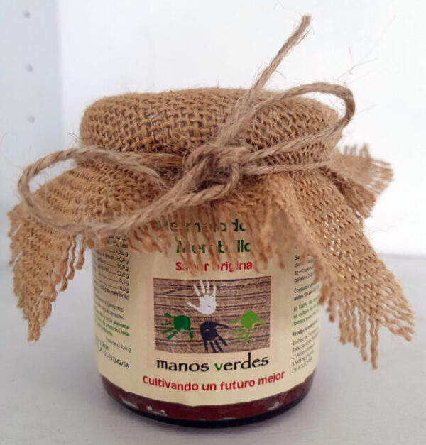Mermelada de membrillo elaborada artesanalmente con azúcar de caña ecológico y sin aditivos.